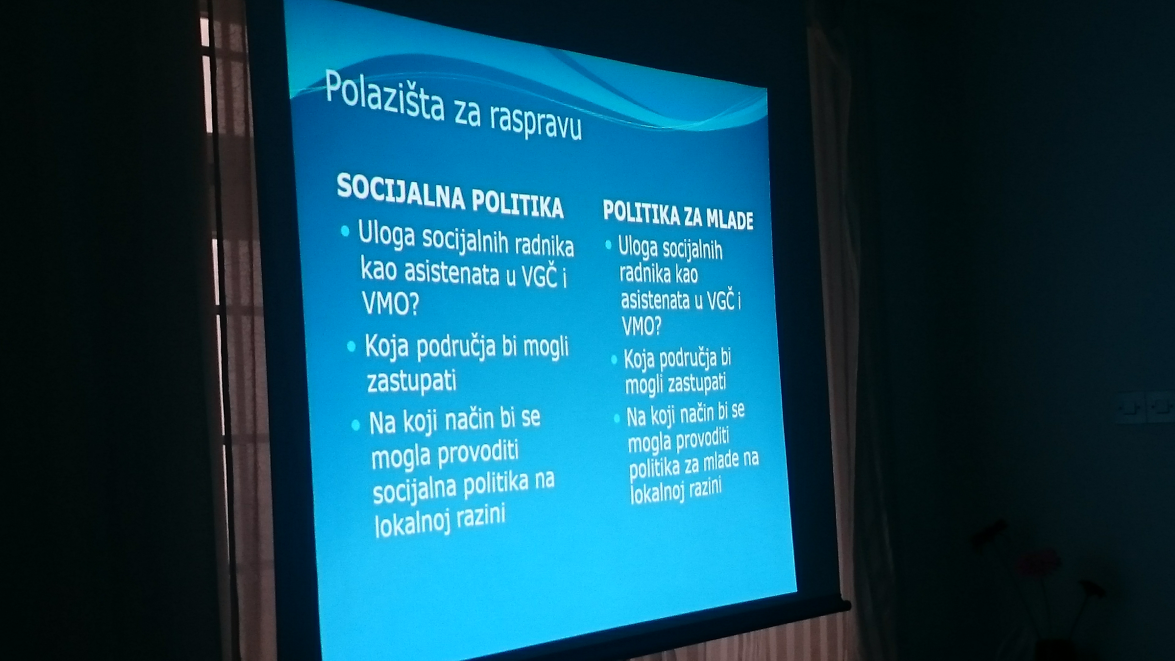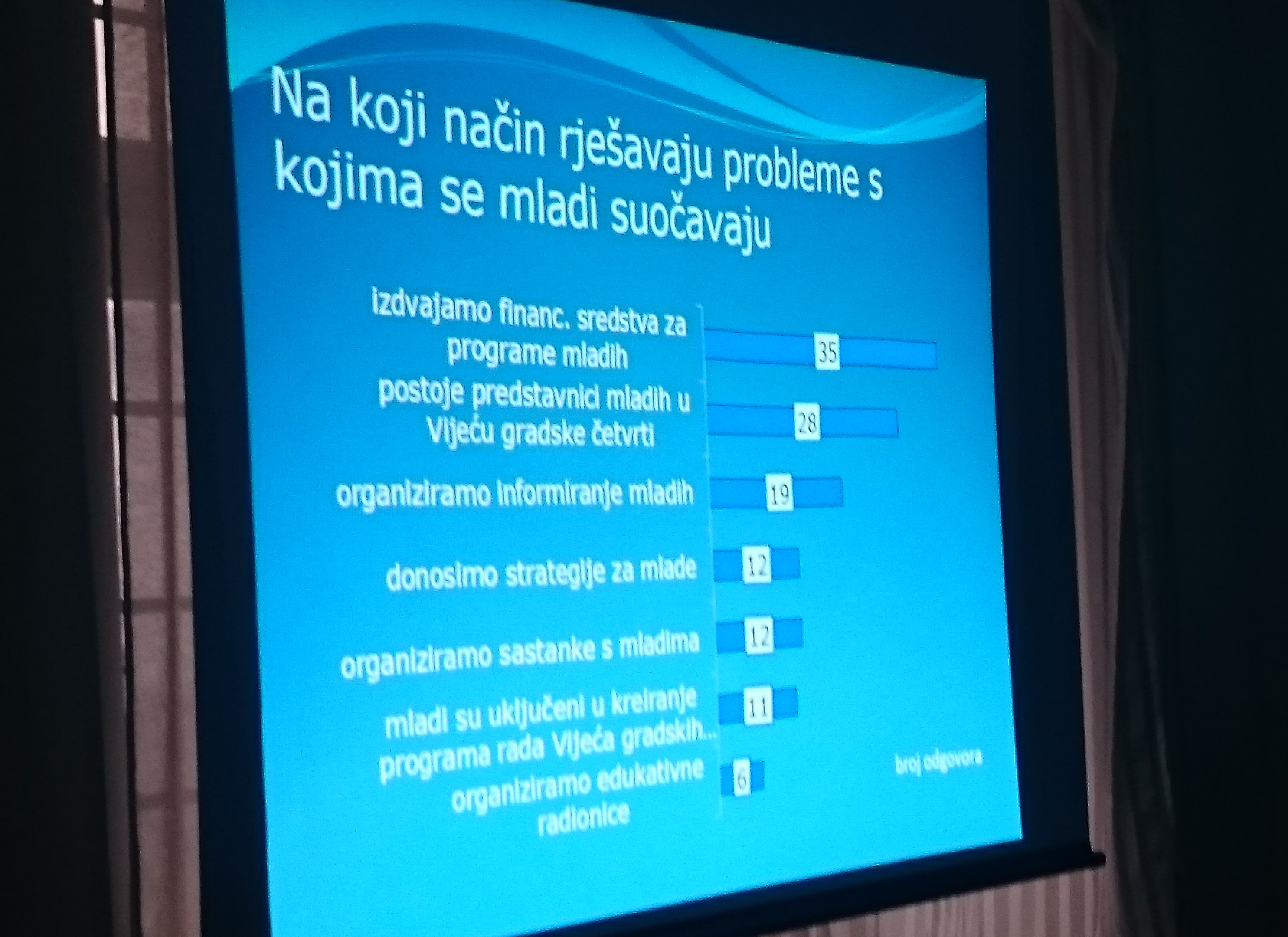 - te su prezentirani rezultati istraživanja anketnog upitnika „Mladi i socijalna politika u gradu Zagrebu“ provedenog među vijećnicima gradskih četvrti i mjesnih odbora a putem kojeg se dobila slika zastupljenosti provođenja mjera socijalne politike za i prema mladima na lokalnoj razini, utvrdilo postojanje problema kao i mehanizmi rješavanja pojedinih problema mladih.